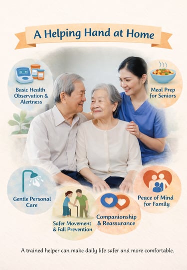 Discover why many elderly couples in Singapore choose trained domestic helpers to age safely at home. Learn how respectful daily support can preserve independence, dignity, and peace of mind without relying heavily on children or institutions.