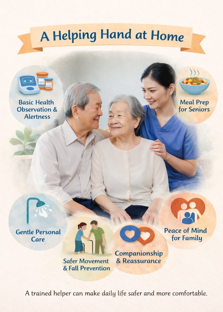 This is why more elderly couples in Singapore are choosing trained domestic helpers — not as a luxury, but as a practical and respectful form of support that allows them to continue living safely at home.