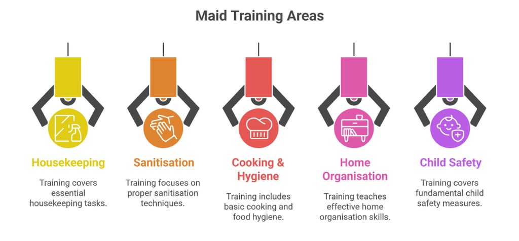 Larger homes, more family members, or specialised chores may increase cost, but maids generally remain economical because their role does not require specialised training or safety-critical skills.