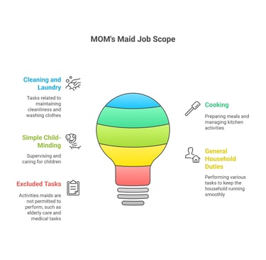 👉 Domestic helpers (FDWs) are authorised for household tasks only.
