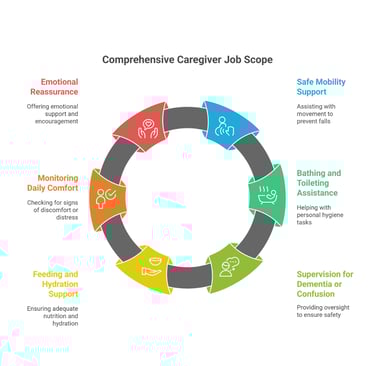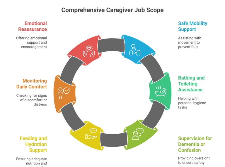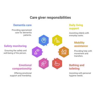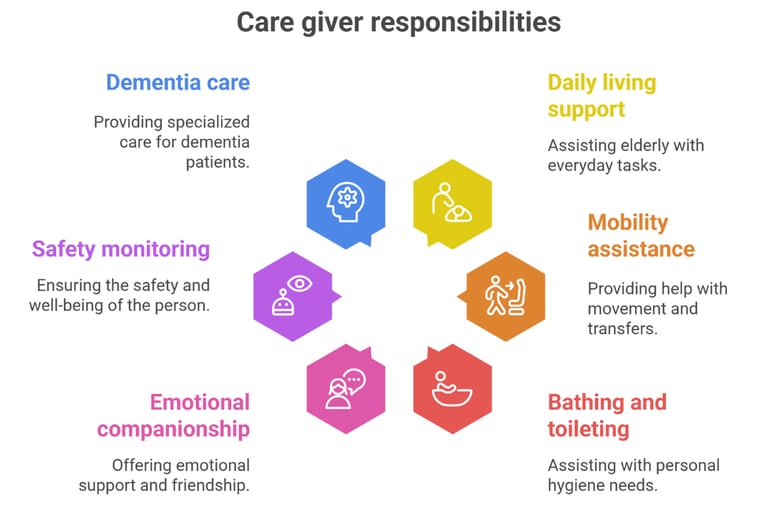 Their responsibilities align with personal care and home-based eldercare support, not general housekeeping.