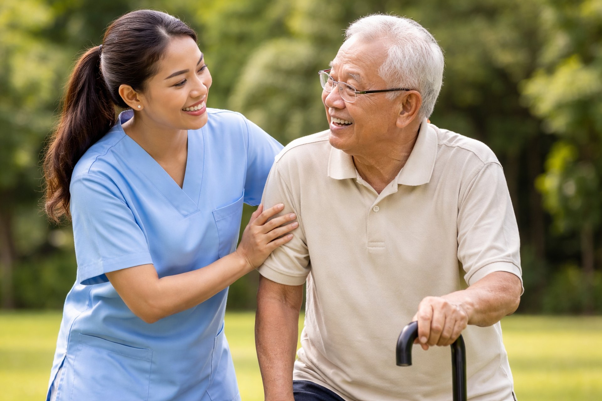 Our caregivers are not registered nurses in Singapore and do not replace hospital-based nursing care. However, they are formally trained caregiving professionals with strong foundational knowledge, practical caregiving competencies, and experience in assisting individuals who require daily support and supervision at home.